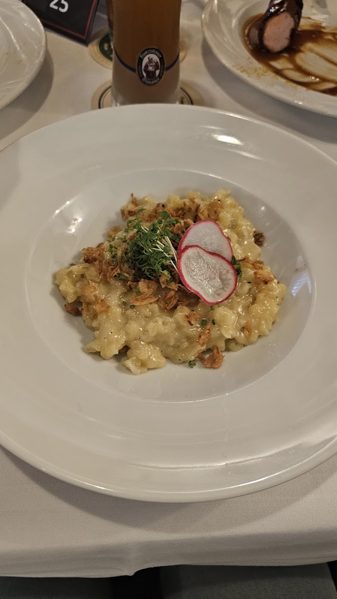 - Vegetarian & Vegan Options: Delight in the vegan Käsespätzle, a hearty dish topped with crispy onions for €13.80, or savor the rich Risotto with roasted oyster mushrooms, Riesling, and truffle at €15.50.